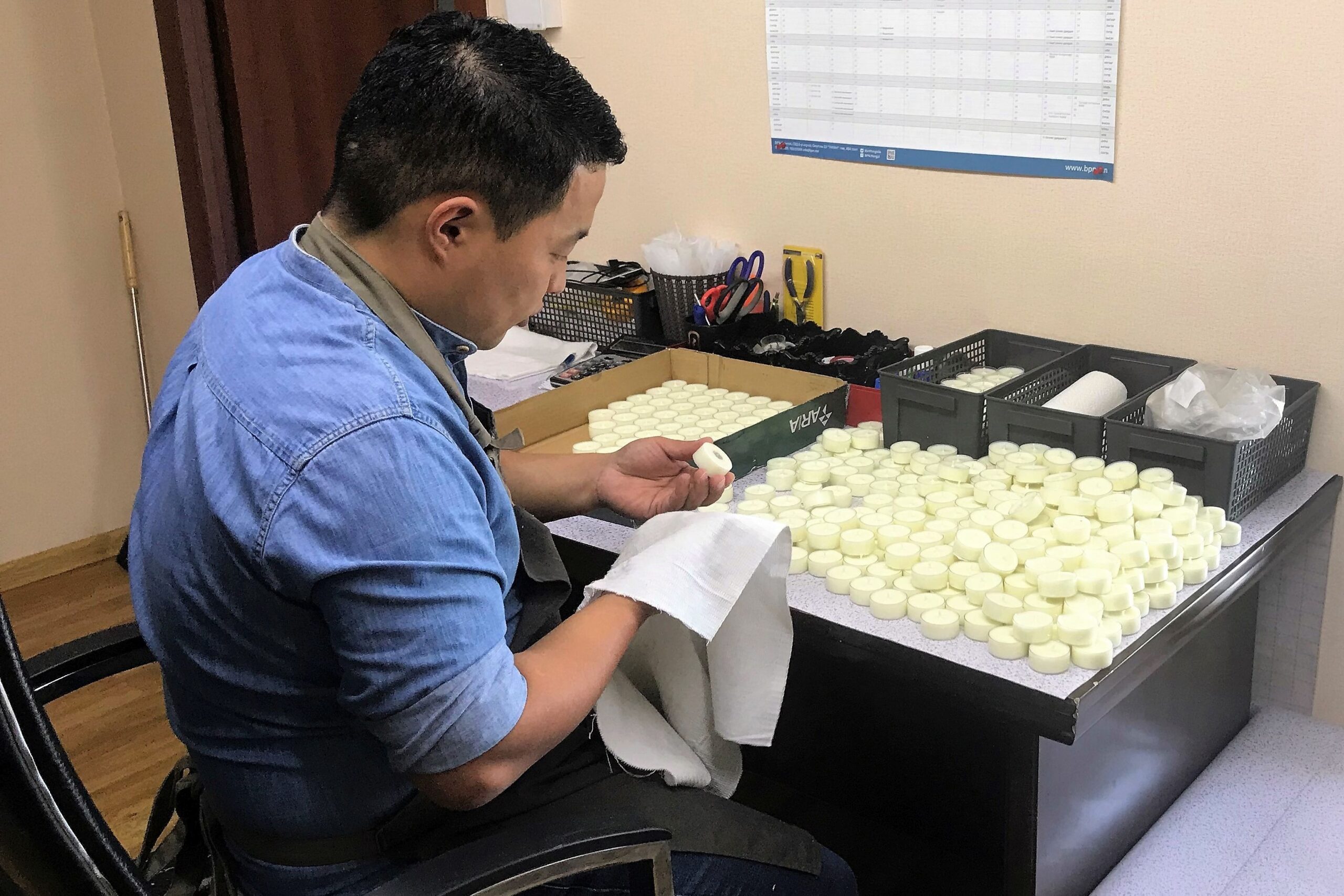 Die 37-jährige Ikhbayar hat in der Mongolei studiert und den Master in Business Administration und Major Marketing, erfolgreich abgeschlossen. Vor rund zehn Jahren hat sie ihre Marketingkenntnisse in London vertieft. Während dieser Zeit erfreute sie sich an besonders schönen Kerzen. Zurück in der Mongolei fand sie leider keine so vielfältige und schöne Auswahl mehr vor – so ist ihre heutige Geschäftsidee entstanden. Ikhbayar begann damit, selbst Kerzen herzustellen und führt seit 2015 ihr eigenes Unternehmen zur Produktion von Sojawachskerzen. Vor einem Jahr liess sich Ikhbayar gar in Japan zur Kerzenspezialistin ausbilden.