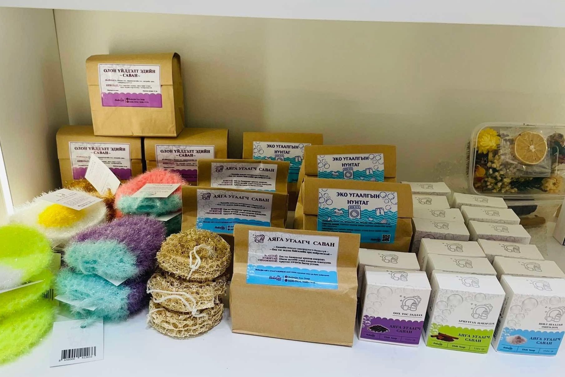 Mungunsar war als Dolmetscherin der koreanischen Sprache sowie als Reiseleiterin tätig, bevor sie in ihre Selbstständigkeit startete. Während Mungunsar als Reiseleiterin arbeitete, sagten ihr die Touristen immer wieder, es gäbe in der Mongolei so wenig einheimische Produkte. Das motivierte sie vor 4 Jahren, ihre eigene Firma zu gründen. Mungunsar möchte Plastikabfälle reduzieren und die Menschen dazu bewegen, sich ökologischer zu verhalten. Darum hat sie sich entschlossen, umweltfreundliche Seifen zu entwickeln – ohne chemische Zusatzstoffe und ohne Plastikverpackung. Um ihre fundierten Fachkenntnisse zu erlangen, bildete sie sich zum Professional Soap Maker in Südkorea aus.