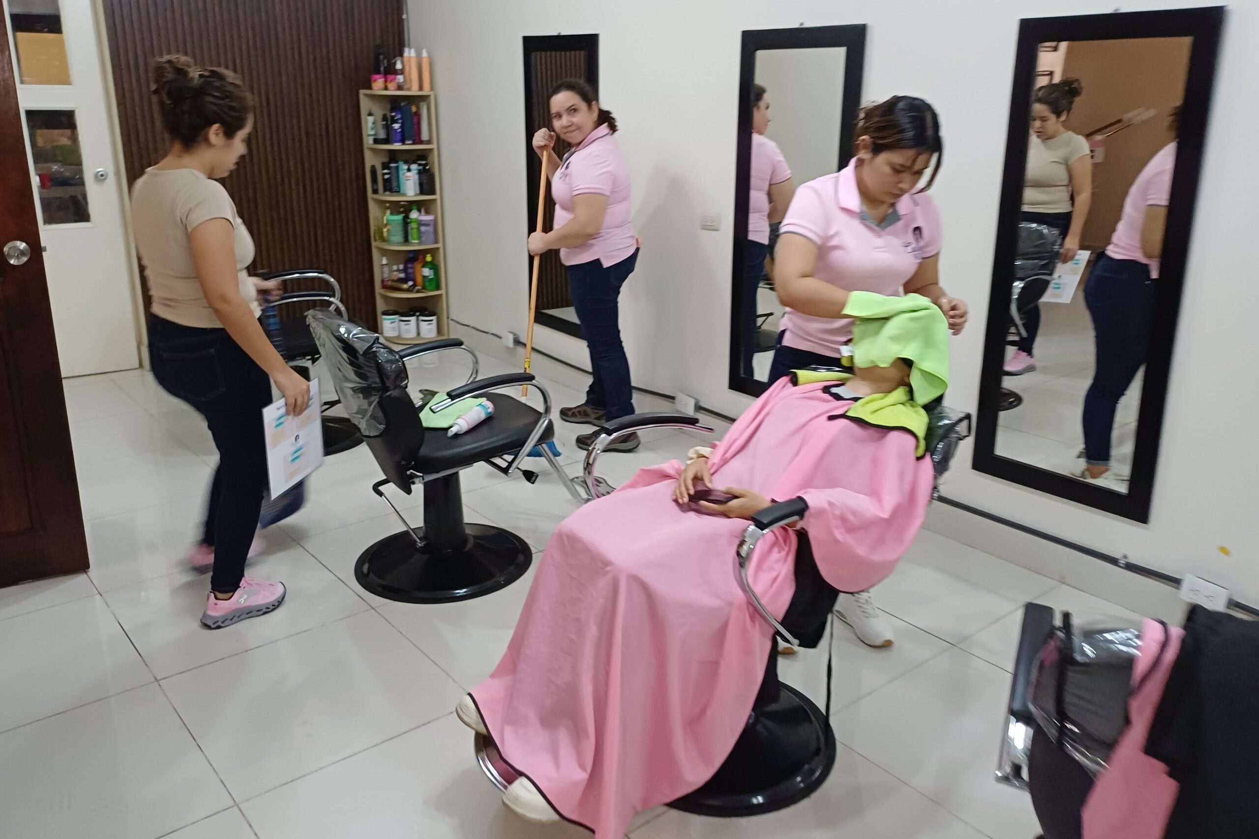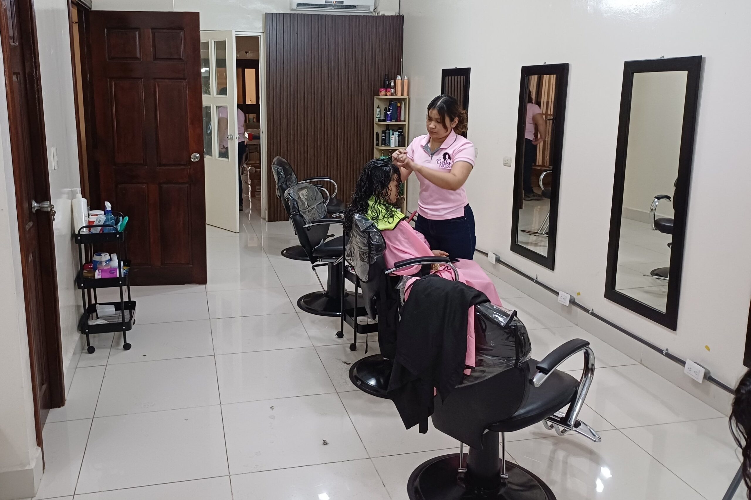 Während ihrer Schwangerschaft entschied sie sich 2022, ihre Bankstelle aufzugeben und sich ganz ihrem Herzensprojekt zu widmen. Mit einem Darlehen von 1’000 USD von ihrem Vater investierte sie in die erste Ausstattung und richtete in ihrem Zuhause einen Coiffeurplatz ein. Durch Online-Weiterbildungen spezialisierte sie sich zunehmend, insbesondere im Schneiden von lockigem Haar, und erweiterte ihr Sortiment kontinuierlich.