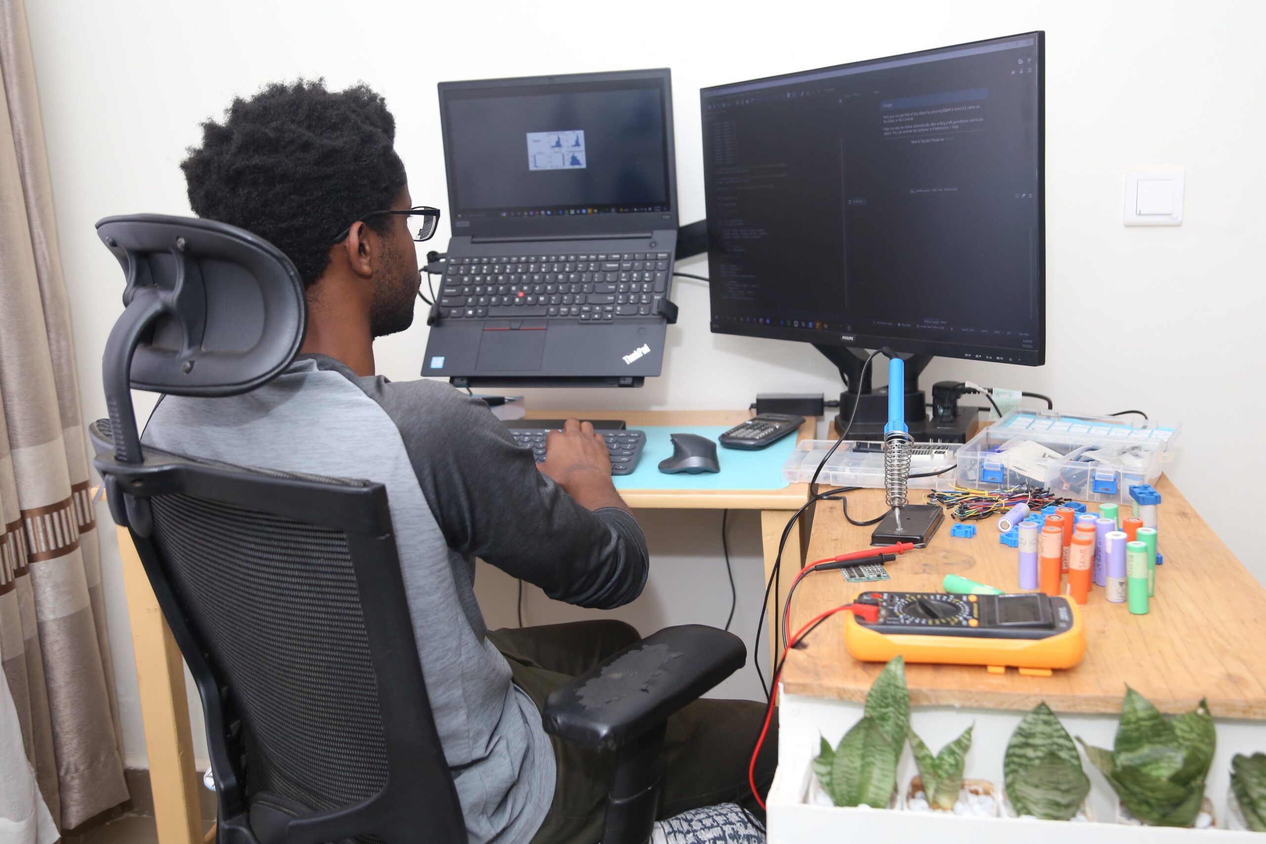 Leandre schloss einen Master in Elektrotechnik ab und ist Mitgründer eines Unternehmens, welches in Rwanda Innovationen im Bereich der Wiederverwendung von Batterien entwickelt. In Rwanda werden Batterien, die mit verschiedenen Geräten geliefert werden, weggeworfen, wenn sie Anzeichen von geringer Kapazität aufweisen. Ausserdem erfordert die Aufrechterhaltung der Stromversorgung bei einem Stromausfall den Einsatz von Dieselgeneratoren und Blei-Säure-Batterien, was die Kohlendioxidemissionen erhöht und die Umwelt gefährdet. Nachdem Leandre und seine beiden Mitgründer erkannten, dass Batterien als Abfall behandelt werden, wenn ihre Leistung nachlässt, und dass sie unseren Boden und unser Wasser mit Chemikalien vergiften, beschlossen sie, ein Unternehmen zu gründen, das umweltschonende Energiespeicherdienste anbietet.