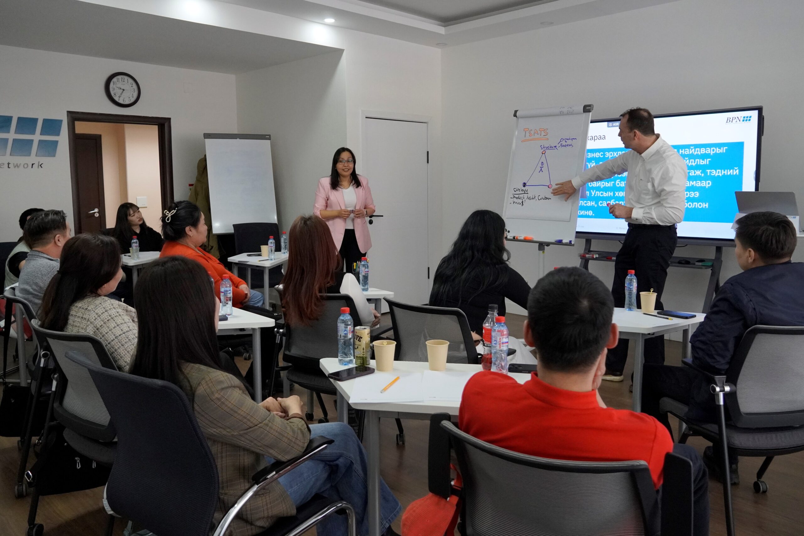 Wir führen seitens BPN in jedem Land pro Jahr die 4 Grundlagenseminare Marketing, Geschäftsführung, Mitarbeiterführung sowie Finanzmanagement durch. Unsere Seminare in der Mongolei finden beispielsweise jeweils von Mittwoch bis Freitag statt und dauern je nach Thema 2-3 Tage. Diese Seminare werden durch den Country Director selbst durchgeführt. Weitere 2-4 Seminare mit speziellen Themen werden von Experten aus dem Expertenpool durchgeführt. Die Seminardauer und Zeiten variieren je nach BPN-Land etwas und sind jeweils auf die lokalen Bedürfnisse abgestimmt.